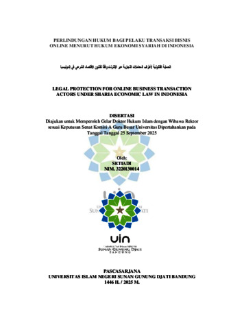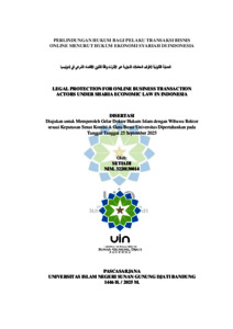 INDONESIA : Penelitian ini dilatarbelakangi oleh kenyataan bahwa perlindungan hukum bagi pelaku transaksi bisnis daring di Indonesia belum optimal sesuai dengan prinsip-prinsip hukum ekonomi Islam. Permasalahan utama dalam penelitian ini adalah belum optimalnya perlindungan hukum terhadap pelaku transaksi bisnis online yang sejalan dengan prinsip-prinsip hukum ekonomi syariah di Indonesia. Ketidakjelasan regulasi, lemahnya integrasi antara hukum positif dan hukum syariah, serta keterbatasan pemahaman pelaku usaha muslim terhadap kaidah muamalah menjadi faktor-faktor utama yang melatarbelakangi persoalan ini. Regulasi yang ada saat ini, seperti Undang- Undang Informasi dan Transaksi Elektronik serta Undang-Undang Perlindungan Konsumen, masih lebih fokus pada aspek perlindungan konsumen dan penegakan hukum pidana, sehingga belum menyediakan landasan hukum yang memadai dan berkeadilan bagi pelaku usaha syariah dalam ekosistem digital. Penelitian ini bertujuan untuk menganalisis: 1) Pelaksanaan pengaturan perlindungan hukum bagi pelaku bisnis online di Indonesia; 2) Kendala dan solusi perlindungan hukum bagi pelaku transaksi bisnis online di Indonesia; 3) Implementasi prinsip-prinsip hukum ekonomi syariah dalam pengaturan dan perlindungan hukum bagi pelaku transaksi bisnis online di Indonesia; dan 4) Prospek pembangunan hukum bagi pelaku transaksi bisnis online di Indonesia. Analisis data menggunakan pendekatan deduktif. Kerangka teori yang digunakan meliputi teori maqāṣid al-sharī‘ah sebagai grand theory, teori perlindungan hukum sebagai middle range theory, dan teori penegakan hukum sebagai applied theory. Pendekatan penelitian yang digunakan adalah pendekatan yuridis normatif empiris dalam bentuk metode penelitian deskriptif analitis dengan jenih penelitian kualitatif. Teknik pengumpulan data meliputi studi pustaka, observasi, wawancara mendalam, dan dokumentasi. Hasil penelitian menunjukkan bahwa: 1) Pengaturan hukum yang bersifat sektoral menunjukkan bahwa regulasi yang berlaku masih disusun berdasarkan kepentingan masing-masing bidang tanpa keterpaduan sistemik;.2) Kendala utama mencakup rendahnya literasi hukum digital, terbatasnya infrastruktur hukum yang responsif, serta ketimpangan akses perlindungan hukum antara pelaku usaha besar dan kecil. Solusi yang diusulkan mencakup peningkatan edukasi hukum berbasis syariah dan sinergi antarlembaga; 3) Implementasi prinsip syariah dalam regulasi masih minim, dan ketidakselarasnya antara fatwa DSN-MUI dan hukum nasional memperlemah kepastian hukum; 4) Pembangunan hukum digital syariah membutuhkan reformasi regulasi, harmonisasi fatwa dan hukum positif, serta pembentukan lembaga regulator khusus yang adaptif terhadap perkembangan teknologi dan prinsip syariah. ARAB : ملخّص الحماية القانونية لأطراف المعاملات التجارية عبر الإنترنت وفقًا لقانون الاقتصاد الشرعي في إندونيسيا. ٤١٠٠٣١٠٢٢٣ سيتيادي الباعث على هذا البحث هو الواقع القائم المتمثل في عدم كفاية الحماية القانونية للفاعلين في مجال المعاملات .التجارية الإلكترونية بما يتوافق مع مبادئ القانون الاقتصادي الإسلامي في إندونيسيا تتمثل المشكلة الرئيسية في هذا البحث في عدم كفاية الحماية القانونية لأطراف المعاملات التجارية الإلكترونية بما يتماشى مع مبادئ القانون الاقتصادي الإسلامي في إندونيسيا. وتعود أسباب هذه المشكلة إلى غموض اللوائح، وضعف التكامل بين القانون الوضعي والشريعة الإسلامية، إضافةً إلى محدودية فهم رجال الأعمال المسلمين لقواعد المعاملات )المعاملة.( إن اللوائح الحالية، مثل قانون المعلومات والمعاملات الإلكترونية وقانون حماية المستهلك، لا تزال تركز بدرجة أكبر على حماية المستهلك وتطبيق القانون الجنائي، مما لا يوفر أساسًا قانونيًا كافيًا وعادلًا لأصحاب الأعمال الشريعة ضمن النظام الرقمي. يهدف هذا البحث إلى تحليل١ : ( لا تزال التشريعات القانونية ذات طابع قطاعي وغير متكاملة، ولا تكفل الحماية المتناسبة للفاعلين في مجال الأعمال المتوافقة مع الشريعة، في ظل غياب التنسيق والتكامل بين .القانون الوضعي والفتاوى الشرعية٢ ( التحديات والحلول لحماية أصحاب المعاملات التجارية الإلكترونية قانونيًا؛٣ ( تطبيق مبادئ القانون الاقتصادي الإسلامي في تنظيم وحماية أصحاب المعاملات التجارية الإلكترونية؛ و(٤ آفاق تطوير القانون لأصحاب المعاملات التجارية الإلكترونية في إندونيسيا. وقد تم تحليل البيانات باستخدام منهج استنباطي. يعتمد الإطار النظري على نظرية مقاصد الشريعة كنظرية كبرى، ونظرية الحماية القانونية كنظرية متوسطة النطاق، ونظرية تطبيق القانون كنظرية تطبيقية. ويستخدم البحث منهجًا شرعيًا-نظاميًا-تجريبيًا من خلال أسلوب وصفي-تحليلي وتصميم بحث نوعي. وتشمل تقنيات جمع البيانات مراجعة الأدبيات، والملاحظة، والمقابلات المعمقة، والتوثيق. تشير نتائج البحث إلى ما يلي: (١ إن الطاب
