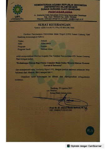 Setiadi, Setiadi (2025) Perlindungan hukum bagi pelaku transaksi bisnis online menurut Hukum Ekonomi Syariah di Indonesia. Doktoral thesis, UIN Sunan Gunung Djati Bandung.