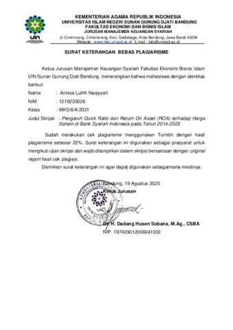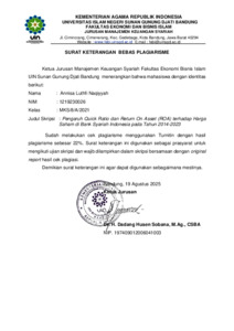 Naqiyyah, Annisa Luthfi (2025) Pengaruh Quick Ratio dan Return On Asset (ROA) terhadap harga saham di Bank Syariah Indonesia pada tahun 2014-2023. Sarjana thesis, UIN Sunan Gunung Djati Bandung.