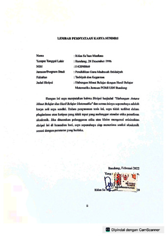 Maulana, Rifan Sa'ban (2022) Hubungan Minat Belajar Matematika Dengan Hasil Belajar Mahasiswa Jurusan Pgmi Uin Bandung. Sarjana thesis, UIN Sunan Gunung Djati Bandung.