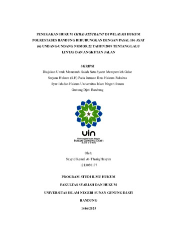 Hasyim, Sayyid Kemal At-Thariq (2025) Penegakan hukum child restraint di wilayah hukum Polrestabes Bandung dihubungkan dengan pasal 106 ayat (6) Undang-Undang nomor 22 tahun 2009 tentang lalu lintas dan angkutan jalan. Sarjana thesis, UIN Sunan Gunung Djati Bandung.