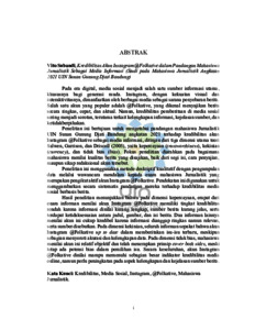 Pada era digital, media sosial menjadi salah satu sumber informasi utama, khususnya bagi generasi muda. Instagram, dengan kekuatan visual dan interaktivitasnya, dimanfaatkan oleh berbagai media sebagai sarana penyebaran berita. Salah satu akun yang populer adalah @Folkative, yang dikenal menyajikan berita secara ringkas, cepat, dan aktual. Namun, kredibilitas pemberitaan di media sosial sering menjadi sorotan, terutama terkait kelengkapan informasi, kejelasan sumber, dan ketidakberpihakan. Penelitian ini bertujuan untuk mengetahui pandangan mahasiswa Jurnalistik UIN Sunan Gunung Djati Bandung angkatan 2021 terhadap kredibilitas akun Instagram @Folkative sebagai media informasi, ditinjau dari tiga dimensi utama teori Salwen, Garrison, dan Driscoll (2005), yaitu kepercayaan (trustworthiness), kekinian (currency), dan tidak bias (bias). Fokus penelitian diarahkan pada bagaimana mahasiswa menilai kualitas berita yang disajikan, baik dari segi isi, cara penyajian, maupun sikap redaksional akun tersebut. Penelitian ini menggunakan metode deskriptif kualitatif dengan pengumpulan data melalui wawancara mendalam kepada enam mahasiswa Jurnalistik yang merupakan pengikut aktif akun Instagram @Folkative. Pendekatan ini digunakan untuk menggambarkan secara sistematis pandangan mereka terhadap kredibilitas media sosial berbasis berita. Hasil penelitian menunjukkan bahwa pada dimensi kepercayaan, empat dari enam informan menilai akun Instagram @Folkative memiliki tingkat kredibilitas rendah karena informasi dinilai kurang lengkap, sumber berita kurang jelas, serta terdapat ketidaksesuaian antara judul, gambar, dan isi berita. Dua informan lainnya menilai akun ini cukup kredibel karena informasi dianggap ringkas namun relevan, serta sumber disebutkan. Pada dimensi kekinian, seluruh informan sepakat bahwa akun Instagram @Folkative up to date dalam memberitakan isu-isu terbaru, meskipun sebagian menyoroti akurasi dan kelengkapan data. Pada dimensi tidak bias, mahasiswa menilai akun ini relatif objektif dan telah menerapkan prinsip cover both sides, meski tetap ada potensi bias dalam pemilihan isu. Secara keseluruhan, akun Instagram @Folkative dinilai mampu memenuhi sebagian besar indikator kredibilitas media online, namun perlu peningkatan pada aspek kelengkapan dan kejelasan sumber berita.