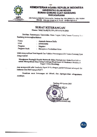 Zulfa, Amanah Amnun (2025) Manajemen strategik Kepala Madrasah dalam peningkatan mutu pendidikan untuk memperkuat daya saing lembaga : Studi kasus di Madrasah Ibtidaiyah Negeri 1 Kota Bandung. Masters thesis, UIN Sunan Gunung Djati Bandung.