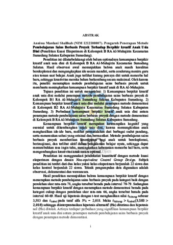 Shalihah, Annissa Maulani (2025) Pengaruh penerapan metode pembelajaran sains berbasis proyek terhadap kemampuan berpikir kreatif anak usia dini: Penelitian kuasi eksperimen di kelompok B RA Al-Muhajirin Kecamatan Sumedang Selatan Kabupaten Sumedang. Sarjana thesis, UIN Sunan Gunung Djati Bandung.