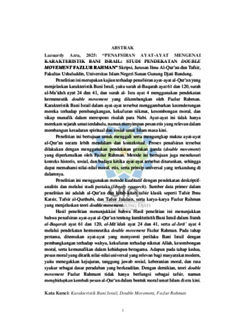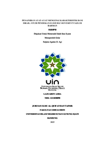 Azra, Lazuardy (2025) Penafsiran ayat-ayat mengenai karakteristik Bani Israil: Studi pendekatan Double Movement Fazlur Rahman. Sarjana thesis, UIN Sunan Gunung Djati Bandung.