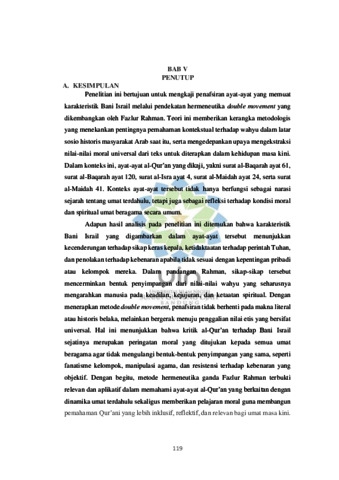| Uncontrolled Keywords: | Karakteristik Bani Israil; Double Movement; Fazlur Rahman |