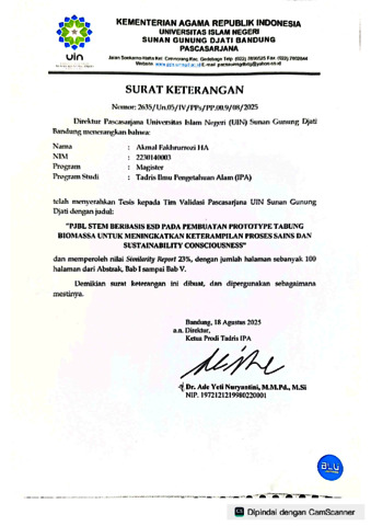 fahrurrozi, akmal (2025) PjBL STEM berbasis ESD pada pembuatan prototype tabung biomassa untuk meningkatkan keterampilan proses sains dan sustainability consciousness. Masters thesis, UIN Sunan Gunung Djati Bandung.