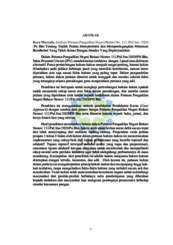 Analisis putusan pengadilan negeri Bekasi no.111/pid.sus/2020/bks tentang tindak pidana memproduksi dan memperdagangkan minuman beralkohol yang tidak sesuai dengan standar yang dipersyaratkan