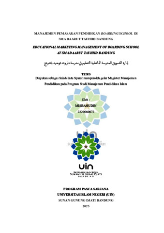Misbahudin, Misbahudin (2025) Manajemen pemasaran pendidikan Boarding School di SMA Daarut Tauhiid Bandung. Sarjana thesis, UIN Sunan Gunung Djati Bandung.