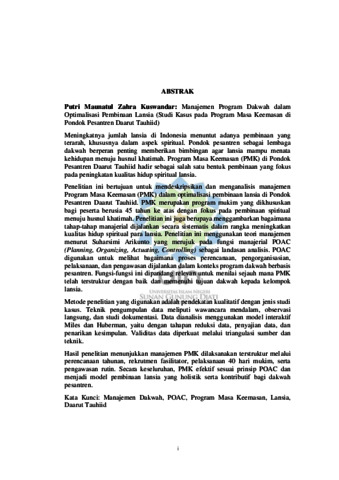 INDONESIA: Meningkatnya jumlah lansia di Indonesia menuntut adanya pembinaan yang terarah, khususnya dalam aspek spiritual. Pondok pesantren sebagai lembaga dakwah berperan penting memberikan bimbingan agar lansia mampu menata kehidupan menuju husnul khatimah. Program Masa Keemasan (PMK) di Pondok Pesantren Daarut Tauhiid hadir sebagai salah satu bentuk pembinaan yang fokus pada peningkatan kualitas hidup spiritual lansia. Penelitian ini bertujuan untuk mendeskripsikan dan menganalisis manajemen Program Masa Keemasan (PMK) dalam optimalisasi pembinaan lansia di Pondok Pesantren Daarut Tauhiid. PMK merupakan program mukim yang dikhususkan bagi peserta berusia 45 tahun ke atas dengan fokus pada pembinaan spiritual menuju husnul khatimah. Penelitian ini juga berupaya menggambarkan bagaimana tahap-tahap manajerial dijalankan secara sistematis dalam rangka meningkatkan kualitas hidup spiritual para lansia. Penelitian ini menggunakan teori manajemen menurut Suharsimi Arikunto yang merujuk pada fungsi manajerial POAC (Planning, Organizing, Actuating, Controlling) sebagai landasan analisis. POAC digunakan untuk melihat bagaimana proses perencanaan, pengorganisasian, pelaksanaan, dan pengawasan dijalankan dalam konteks program dakwah berbasis pesantren. Fungsi-fungsi ini dipandang relevan untuk menilai sejauh mana PMK telah terstruktur dengan baik dan memenuhi tujuan dakwah kepada kelompok lansia. Metode penelitian yang digunakan adalah pendekatan kualitatif dengan jenis studi kasus. Teknik pengumpulan data meliputi wawancara mendalam, observasi langsung, dan studi dokumentasi. Data dianalisis menggunakan model interaktif Miles dan Huberman, yaitu dengan tahapan reduksi data, penyajian data, dan penarikan kesimpulan. Validitas data diperkuat melalui triangulasi sumber dan teknik. Hasil penelitian menunjukkan manajemen PMK dilaksanakan terstruktur melalui perencanaan tahunan, rekrutmen fasilitator, pelaksanaan 40 hari mukim, serta pengawasan rutin. Secara keseluruhan, PMK efektif sesuai prinsip POAC dan menjadi model pembinaan lansia yang holistik serta kontributif bagi dakwah pesantren. ENGLISH: The increasing number of elderly people in Indonesia demands well-directed guidance, particularly in the spiritual aspect. Islamic boarding schools (pondok pesantren), as institutions of da’wah, play an important role in providing guidance to help the elderly prepare for a meaningful life toward husnul khatimah (a good ending). The Golden Age Program (Program Masa Keemasan / PMK) at Daarut Tauhiid Islamic Boarding School is one such initiative that focuses on improving the spiritual quality of life among the elderly. This research aims to describe and analyze the management of the Golden Age Program (PMK) in optimizing elderly spiritual development at Daarut Tauhiid Islamic Boarding School. PMK is a residential program specifically designed for participants aged 45 and above, focusing on spiritual guidance toward husnul khatimah. The study also seeks to explain how managerial stages are systematically implemented to enhance the spiritual quality of life of the elderly. The research uses management theory by Suharsimi Arikunto, which refers to the POAC (Planning, Organizing, Actuating, Controlling) managerial functions as the analytical framework. POAC is applied to examine how planning, organizing, implementing, and controlling are carried out within the context of pesantren-based da’wah programs. These functions are considered relevant in assessing the extent to which PMK is well-structured and fulfills its da’wah objectives for the elderly group. The research employs a qualitative approach with a case study design. Data collection techniques include in-depth interviews, direct observation, and documentation study. The data were analyzed using the interactive model of Miles and Huberman, consisting of data reduction, data display, and conclusion drawing. Data validity was strengthened through source and technique triangulation. The findings show that the management of PMK is systematically implemented through annual planning, facilitator recruitment, a 40-day residential program, and regular supervision. Overall, PMK has proven effective according to POAC principles and serves as a holistic model for elderly development that contributes significantly to the pesantren’s da’wah mission. ARABIC: إنّ ازدياد عدد المسنين في إندونيسيا يتطلّب توجيهاً منظّماً، وخاصة في الجانب الروحي. وتُعَدّ المدارس الدينية (الـ«بِسَنْتْرِن») مؤسساتٍ دعويةً تؤدي دوراً مهماً في إرشاد المسنين لمساعدتهم على تنظيم حياتهم نحو حُسْنِ الخاتِمَة. ويأتي برنامج العصر الذهبي (PMK) في معهد «دار التوحيد» كأحد أشكال الرعاية التي تركّز على تحسين جودة الحياة الروحية للمسنين. يهدف هذا البحث إلى وصف وتحليل إدارة برنامج العصر الذهبي (PMK) في تحسين عملية تربية المسنين في معهد دار التوحيد. يُعَدّ البرنامج إقامةً مخصصةً للمشاركين الذين تتجاوز أعمارهم 45 عاماً، ويركّز على البناء الروحي المؤدي إلى حُسْنِ الخاتِمَة. كما يسعى البحث إلى بيان كيفية تطبيق المراحل الإدارية بشكلٍ منهجي لرفع جودة الحياة الروحية لدى المسنين. استندت الدراسة إلى نظرية الإدارة حسب «سُهَرْسِيمِي أريكونتو» التي تشير إلى وظائف الإدارة الأربعة (التخطيط، التنظيم، التنفيذ، الرقابة – POAC) كأساسٍ للتحليل. ويُستَخدَم هذا النموذج لدراسة كيفية تنفيذ عمليات الت