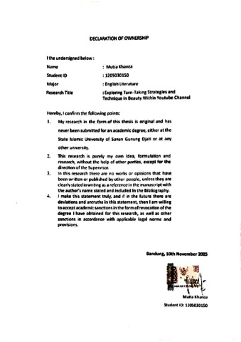 Khanza, Mutia (2025) Exploring turn-taking strategies and technique in the Beauty Within Youtube channel. Sarjana thesis, UIN Sunan Gunung Djati Bandung.