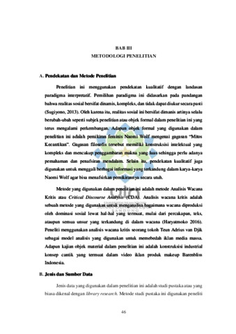 Persoalan tentang konsep cantik, menjadi tema yang sangat serius untuk dibicarakan. Karena bukan hanya berbicara tentang patokan standar kecantikan melainkan menyingkap realitas masalah sosial, psikologis, dan permasalahan ekonomi yang ada di balik konstruksi kecantikan. Permasalahan yang timbul dari adanya standar kecantikan, membuat banyak perempuan merasa tidak puas, insecure, dan terus-menerus bergantung pada produk kecantikan seperti skin care, kosmetik, jasa kecantikan, bedah kecantikan dan trend kecantikan. Penelitian ini bertujuan untuk mengkritik konstruksisi konsep cantik yang dibentuk oleh industri kecantikan, khususnya dalam iklan produk makeup Barenbliss (BNB), melalui perspektif teori mitos kecantikan Naomi Wolf. Penelitian ini berfungsi untuk membongkar standar kecantikan yang secara tidak sadar sering dinormalisasi sebagai bentuk mutlak. Penelitian ini berusaha menunjukkan bagaimana industri memanfaatkan tubuh perempuan sebagai alat kontrol ekonomi dan kuasa patriarki. Penelitian ini menggunakan pendekatan kualitatif dengan metode analisis wacana kritis model Van Dijk melalui tiga dimensi analisis teks, kognisi sosial, dan konteks, Analisis digunakan sebagai alat bantu dalam membedah struktur dan wacana yang terdapat dalam iklan makeup Barenbliss. Hasil penelitian menunjukkan bahwa iklan Makeup Barenbliss (BNB) mengkonstruksisi konsep cantik sebagai komoditas yang dapat dicapai melalui konsumsi produk. Hal ini memperkuat tesis Naomi Wolf bahwa mitos kecantikan adalah sebuah ideologi yang diciptakan oleh industri kapitalis untuk menindas perempuan dan mengalihkan fokus mereka dari pemberdayaan diri menuju obsesi pada penampilan fisik. Dengan demikian, penelitian ini menyimpulkan bahwa konstruksisi industrial konsep cantik merupakan bentuk penindasandan alat kontrol terhadap tubuh perempuan, yang terus beradaptasi dalam strategi pemasaran modern.