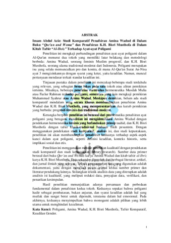 Aziz, Imam Abdul (2025) Studi komparatif penafsiran Amina Wadud di dalam buku "Qur'an and Woman" dan penafsiran K.H. Bisri Musthofa di dalam kitab tafsir "Al-Ibris" terhadap ayat-ayat poligami. Sarjana thesis, UIN Sunan Gunung Djati Bandung.