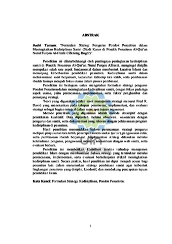 | Uncontrolled Keywords: | Formulasi Strategi; Kedisiplinan; Pondok Pesantren |