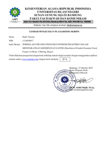 Tamam, Badri (2025) Formulasi strategi pengurus pondok pesantren dalam meningkatkan kedisiplinan santri. Sarjana thesis, UIN Sunan Gunung Djati Bandung.
