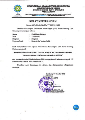 | Divisions: | Pascasarjana Program Magister > Program Studi Ilmu Al-Quran dan Tafsir |