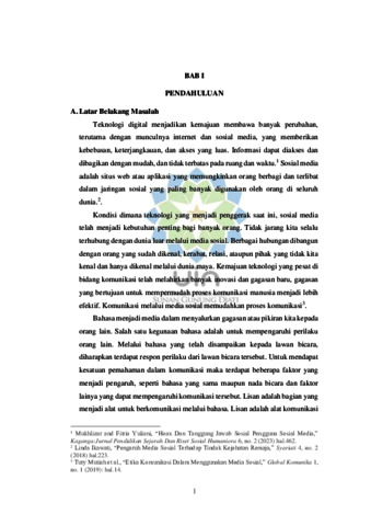 INDONESIA: Penelitian ini mengkaji bagaimana konsep terkait menjaga lisan dan aurat di dalam Al-Qur’an. Pokok dari permasalahan ini adalah untuk mencoba melihat relevansi dari aturan yang ada didalam Al-Qur’an untuk menjawab masalah yang ada dalam etika penggunaan sosial media. Secara garis besar segala aktivitas yang ada didalam sosial media merupakan aktivitas yang berkaitan dengan tulisan dan penampilan. Tulisan itu sendiri adalah perwujudan dari bahasa utama manusia yaitu lisan. Dan dalam menjaga penampilan hendaknya berakar pada aturan untuk menjaga auratnya. Berdasarkan data yang digunakan dalam penelitian ini, maka sumber data terdiri dari sumber data primer dan sumber data sekunder. Sumber data primer yang digunakan dalam penelitian ini ialah ayat-ayat Al-Qur’an tentang menjaga lisan dan aurat. Sedangkan sumber data sekundernya adalah buku-buku dan jurnal yang relevan dengan pembahasan penelitian ini. Metode yang digunakan adalah deskriptif analitis. Hasil penelitian ini ialah didalam Al-Qur’an terdapat anjuran maupun larangan dalam menjaga lisan yaitu berupa larangan berdusta, berhati-hati sebelum berbicara, membalikan makna, berkata yang baik, berkata yang benar dan berkata dengan lemah lembut. Sedangkan terkait aurat, Al-Qur’an berbicara tentang empat hal, yaitu fitrah manusia menjaga aurat, kewajiban menjaga aurat, menjaga pandangan dan batasan aurat. Konsep dari menjaga lisan dan aurat ini relevan dengan etika penggunaan sosial media karena dapat menjawab dari setiap masalah yang ada dan sesuai dengan aturan hukum yang ada. ENGLISH: This study examines how the concepts of guarding one's speech and aurat are addressed in the Qur'an. The main issue here is to explore the relevance of the rules outlined in the Qur'an in addressing ethical concerns related to the use of social media. In general, all activities on social media involve writing and appearance. Writing itself is the manifestation of the primary language of humans, which is speech. And in maintaining appearance, one should adhere to the rules for maintaining aurat. Based on the data used in this study, the data sources consist of primary and secondary data sources. The primary data sources used in this study are the verses of the Qur'an about guarding one's speech and aurat. The secondary data sources are books and journals relevant to the discussion in this study. The method used is descriptive analysis. The results of this study indicate that the Qur'an contains both recommendations and prohibitions regarding the preservation of speech, such as prohibitions against lying, being cautious before speaking, twisting meanings, speaking kindly, speaking truthfully, and speaking gently. Regarding modesty, the Qur’an addresses four aspects: the natural inclination of humans to maintain aurat, the obligation to maintain aurat, guarding one’s gaze, and the boundaries of aurat. The concept of maintaining aurat in speech and behavior is relevant to social media ethics as it addresses various issues. ARABIC: هذا البحث يدرس كيفية تطبيق مفهوم الحفاظ على اللسان والعورة في القرآن الكريم. جوهر هذه المسألة هو محاولة النظر في مدى صلة القواعد الواردة في القرآن الكريم بمعالجة المشكلات المتعلقة بأخلاقيات استخدام وسائل التواصل الاجتماعي. بشكل عام، جميع الأنشطة الموجودة في وسائل التواصل الاجتماعي هي أنشطة تتعلق بالكتابة والمظهر. الكتابة نفسها هي تجسيد للغة الرئيسية للإنسان وهي اللسان. وفي الحفاظ على المظهر يجب أن يكون متجذراً في القواعد المتعلقة بالحفاظ على العورة. استنادًا إلى البيانات المستخدمة في هذا البحث، فإن مصادر البيانات تتكون من مصادر أولية ومصادر ثانوية. المصادر الأولية المستخدمة في هذا البحث هي آيات القرآن الكريم المتعلقة بحفظ اللسان والعورة. أما المصادر الثانوية فهي الكتب والمجلات ذات الصلة بموضوع البحث. الطريقة المستخدمة هي الطريقة الوصفية التحليلية. نتائج هذا البحث هي أن القرآن الكريم يحتوي على توصيات ومحظورات فيما يتعلق بحفظ اللسان، منها تحريم الكذب، والتأني قبل الكلام، وتغيير المعنى، والكلام الطيب، والكلام الصادق، والكلام اللطيف. أما فيما يتعلق بالعورة، فإن القرآن يتحدث عن أربعة أمور، وهي: فطرة الإنسان في حفظ العورة، وواجب حفظ العورة، وحفظ البصر، وحدود العورة. مفهوم حفظ اللسان والعورة هذا ذو صلة بأخلاقيات استخدام وسائل التواصل الاجتماعي لأنه يمكن أن يجيب على كل مشكلة موجودة ويتوافق مع القواعد القانونية الموجودة.