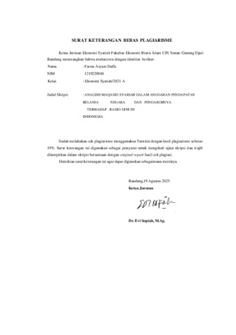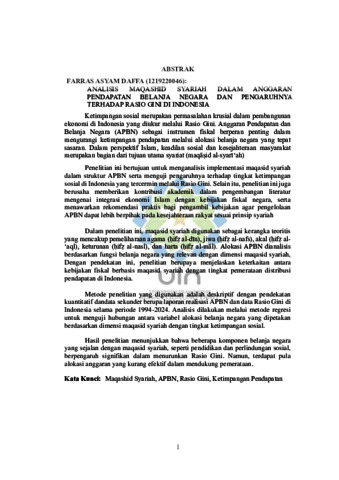 ASYAM DAFFA, FARRAS (2025) Analisis maqashid syariah dalam anggaran pendapatan belanja negara dan pengaruhnya terhadap rasio gini di Indonesia. Sarjana thesis, UIN Sunan Gunung Djati Bandung.