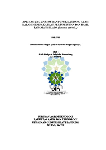 Simanulang, Sifah Wahyuni Salsabila (2025) Aplikasi eco enzyme dan pupuk kandang ayam dalam meningkatkan pertumbuhan dan hasil tanaman selada (Lactuca sativa L.). Sarjana thesis, UIN Sunan Gunung Djati Bandung.