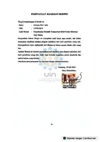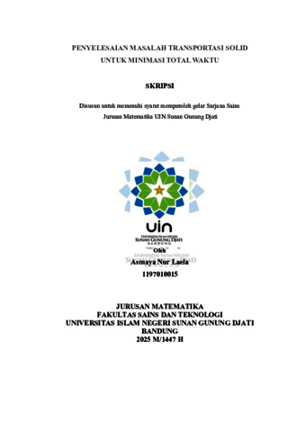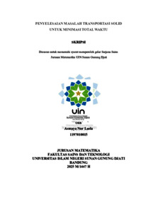 Laela, Asmaya Nur (2025) Penyelesaian masalah transportasi solid untuk minimasi total waktu. Sarjana thesis, UIN Sunan Gunung Djati Bandung.