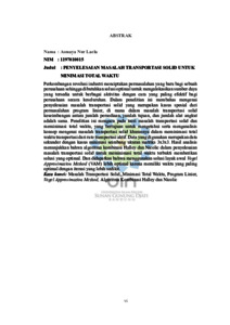 | Uncontrolled Keywords: | Masalah Transportasi Solid;Minimasi Total Waktu; Program Linier; Vogel Approximation Problem; Algoritma Kombinasi Halley dan Nicolic |