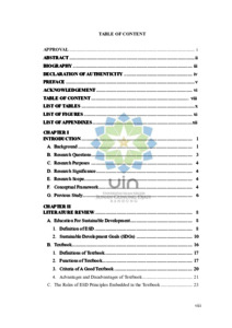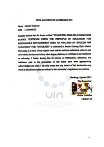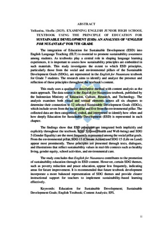 Yulianisa, Shofia (2025) Examining english junior high school textbook using the principle of Education for Sustainable Development (ESD): An Analysis of English for Nusantara for 7th Grade. Sarjana thesis, UIN Sunan Gunung Djati Bandung.