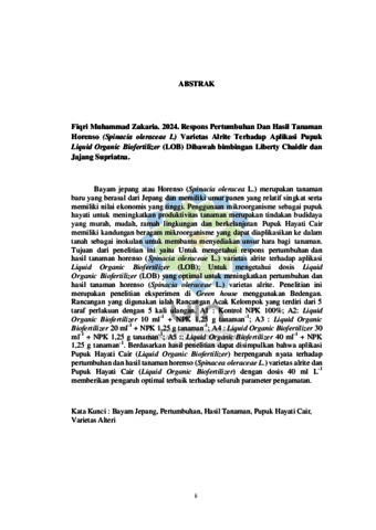 Zakaria, Fiqri Muhammad (2025) Respons pertumbuhan dan hasil tanaman Horenso (Spinacia oleraceae L) varietas Alrite terhadap aplikasi Pupuk Liquid Organic Biofertilizer (LOB). Sarjana thesis, UIN Sunan Gunung Djati Bandung.