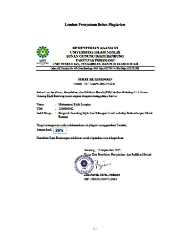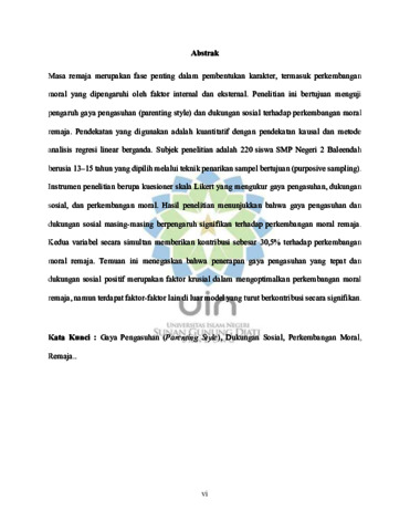 | Uncontrolled Keywords: | Gaya Pengasuhan (Parenting Style); Dukungan Sosial; Perkembangan Moral; Remaja |