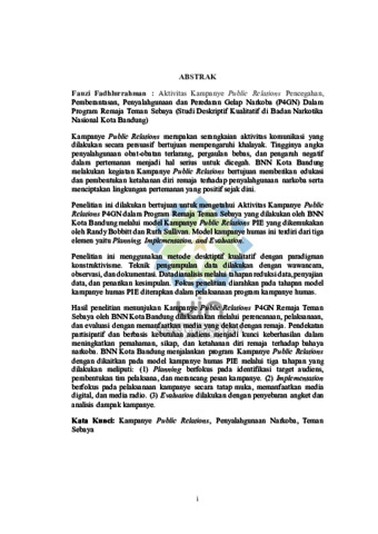 | Uncontrolled Keywords: | Kampanye Public Relations; Penyalahgunaan Narkoba; Teman Sebaya |