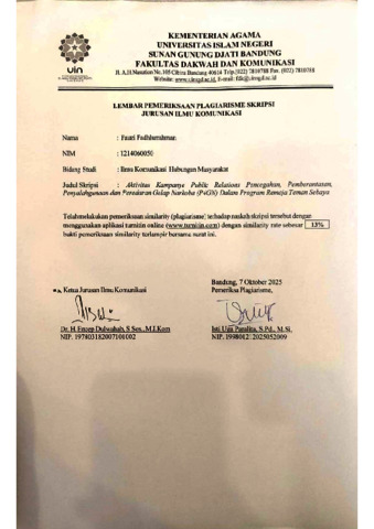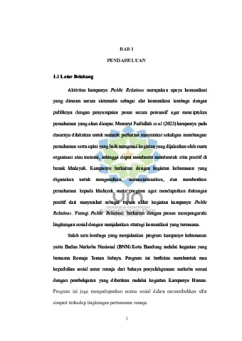 fadhlurrahman, fauzi (2025) Aktivitas kampanye public relations pencegahan,pemberantasan,penyalahgunaan,dan peredaran gelap narkoba (P4GN) dalam program remaja teman sebaya : Studi Deskriptif Kualitatif di BNN Kota Bandung. Sarjana thesis, UIN Sunan Gunung Djati Bandung.
