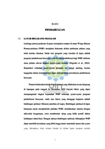 | Uncontrolled Keywords: | Bimbingan Spiritual; Kepatuhan; Warga Binaan Pemasyarakatan; Program Bebas Bersyarat |