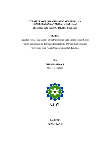 Sulistiyani, Siti (2025) Strategi komunikasi radio dakwah dalam mempertahankan akidah umat Islam: Penelitian pada RadioQU 104.8 FM Kuningan. Sarjana thesis, UIN Sunan Gunung Djati Bandung.