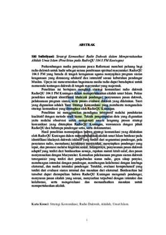 Strategi komunikasi radio dakwah dalam mempertahankan akidah umat Islam: Penelitian pada RadioQU 104.8 FM Kuningan