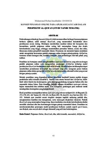 Imaddudiin, Muhammad Farhan (2025) Konsep pinjaman online pada aplikasi Easycash dalam perspektif Al-Qur'an: Studi tafsir tematik. Sarjana thesis, UIN Sunan Gunung Djati Bandung.