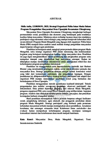 Aulia, Shifa (2025) Strategi organisasi Pelita Intan Muda dalam program pengabdian masyarakat Desa Cipanjalu Kecamatan Cilengkrang : Penelitian di Desa Cipanjalu, Kecamatan Cilengkrang. Sarjana thesis, UIN Sunan Gunung Djati Bandung.