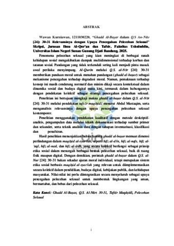 Kurniawan, Wawan (2025) Ghadd al-baṣar dalam Q.S An-Nūr [24]: 30-31 relevansinya dengan upaya pencegahan pelecehan seksual. Sarjana thesis, UIN Sunan Gunung Djati Bandung.