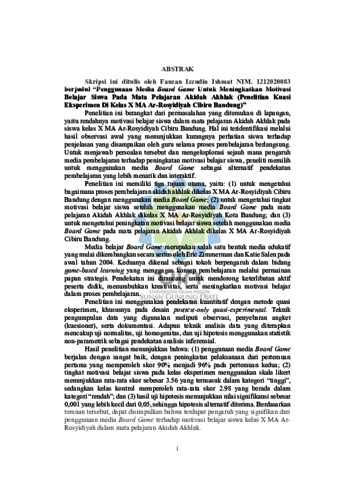 Ishmat, Fauzan Izzudin (2025) Penggunaan media Board Game untuk meningkatkan motivasi belajar siswa pada mata pelajaran Akidah Akhlak: Penelitian kuasi eksperimen pada kelas X MA Ar-Rosyidiyah Cibiru Bandung. Sarjana thesis, UIN Sunan Gunung Djati Bandung.