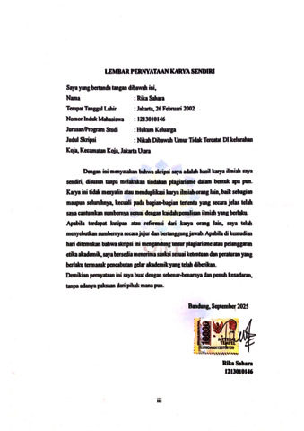 Sahara, Rika (2025) Nikah dibawah umur tidak tercatat di Kelurahan Koja, Kecamatan Koja, Jakarta Utara. Sarjana thesis, UIN Sunan Gunung Djati Bandung.