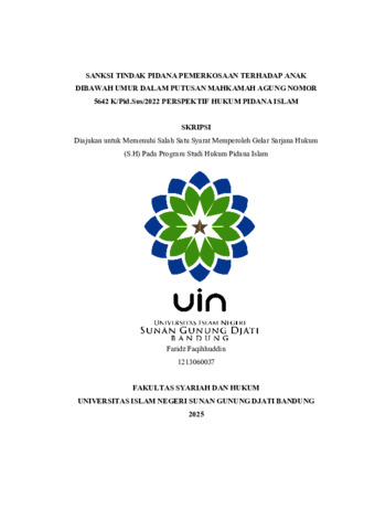 Faqihhuddin, Faridz (2025) Sanksi tindak pidana pemerkosaan terhadap anak dibawah umur dalam Putusan Mahkamah Agung nomor 5642 K/Pid.Sus/2022 perspektif hukum pidana Islam. Sarjana thesis, UIN Sunan Gunung Djati Bandung.