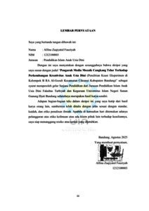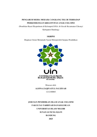 Fauziyah, Alfina Zaqiyatul (2025) Pengaruh media Mozaik Cangkang Telur terhadap perkembangan kreativitas Anak Usia Dini : Penelitian kuasi eksperimen di kelompok B RA Al-Gozali Kecamatan Cileunyi Kabupaten Bandung. Sarjana thesis, UIN Sunan Gunung Djati Bandung.