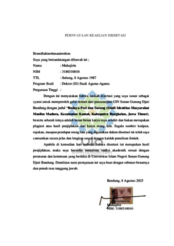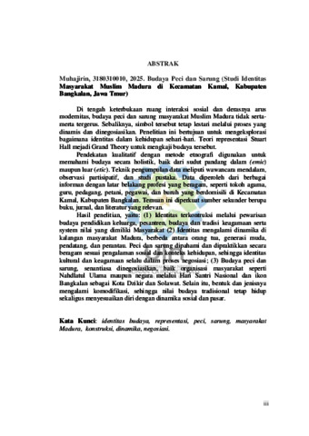 Muhajirin, Muhajirin (2025) Budaya peci dan sarung: Studi identitas masyarakat muslim Madura di Kecamatan Kamal, Kabupaten Bangkalan, Jawa Timur. Doktoral thesis, UIN Sunan Gunung Djati Bandung.