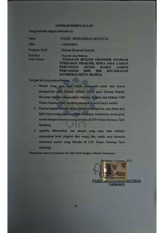 Muchlis, Fadel Muhammad (2025) Tinjauan Hukum Ekonomi Syariah Terhadap Praktik Sewa Jasa Lahan Pertanian:Studi Kasus Lahan Pertanian Dhe Iim Kecamatan Kunduran Kota Blora. Sarjana thesis, UIN Sunan Gunung Djati Bandung.
