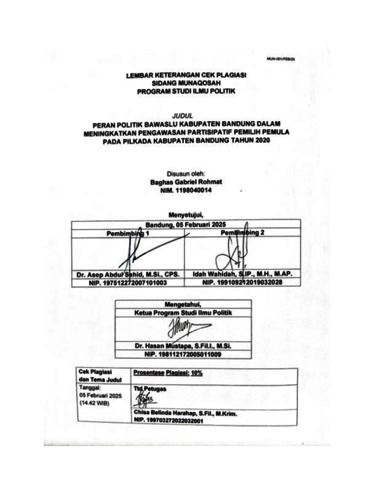Gabriel, Baghas (2025) Peran politik Bawaslu Kabupaten Bandung dalam meningkatkan pengawasan partisipatif pemilih pemula pada Pilkada Kabupaten Bandung tahun 2020. Sarjana thesis, UIN Sunan Gunung Djati Bandung.