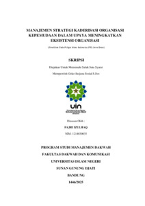 Izulhaq, Fajri (2025) Manajemen strategi kaderisasi organisasi kepemudaan dalam upaya meningkatkan eksistensi organisasi: Penelitian pada Pelajar Islam Indonesia (PII) Jawa Barat. Sarjana thesis, UIN Sunan Gunung Djati Bandung.