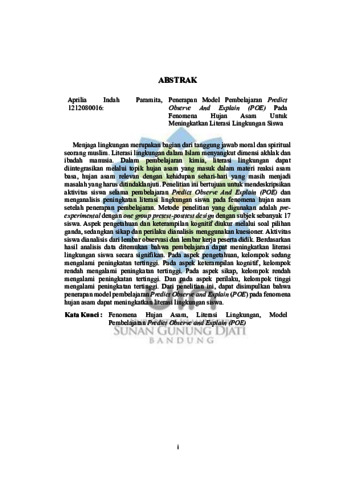Paramita, Aprilia Indah (2025) Penerapan model pembelajaran Predict-Observe-Explain (POE) pada fenomena hujan asam untuk meningkatkan literasi lingkungan siswa. Sarjana thesis, UIN Sunan Gunung Djati Bandung.