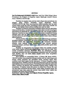 | Uncontrolled Keywords: | Anak Luar Nikah, Izin Poligami; Putusan Pengadilan Agama; Hukum Islam; Hukum Positif |