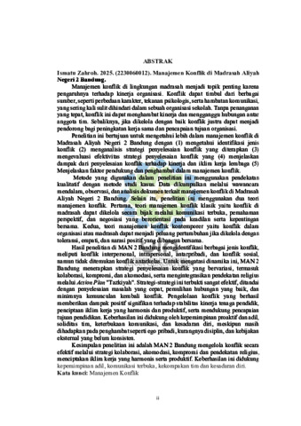 Zahroh, Ismatu (2025) Manajemen konflik di Madrasah Aliyah Negeri 2 Bandung. Masters thesis, UIN Sunan Gunung Djati Bandung.