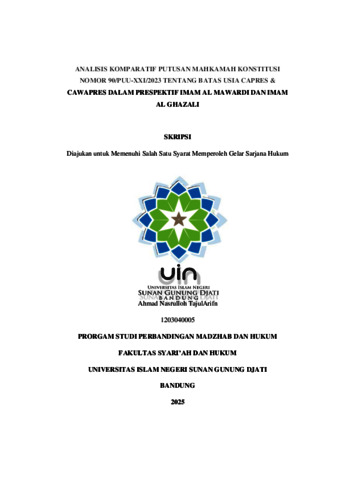 Tajul Arifin, Ahmad Nasrulloh (2025) Analisis komparatif Putusan Mahkamah konstitusi nomor 90/Puu-Xxi/2023 tentang batas usia capres & cawapres dalam prespektif Imam Al Mawardi dan Imam Al Ghazali. Sarjana thesis, UIN Sunan Gunung Djati Bandung.