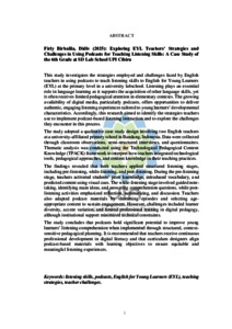 | Uncontrolled Keywords: | listening skills; podcasts; English for Young Learners (EYL); teaching strategies; teacher challenges |