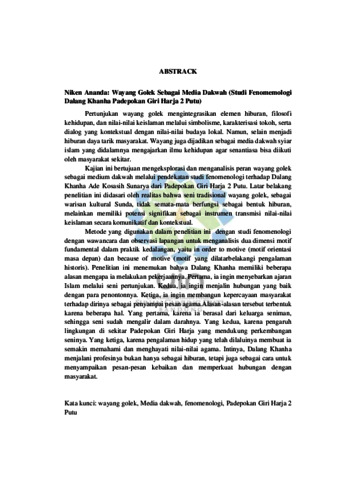 Ananda, Niken (2026) Wayang Golek Sebagai Media Dakwah: Studi Fenomenologi Dalang Khanha Padepokan Giri Harja 2 Putu. Sarjana thesis, UIN Sunan Gunung Djati Bandung.